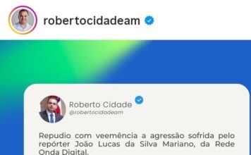 Governador interino, Roberto Cidade, divulga nota de repúdio contra agressão sofrida pelo repórter João Lucas.