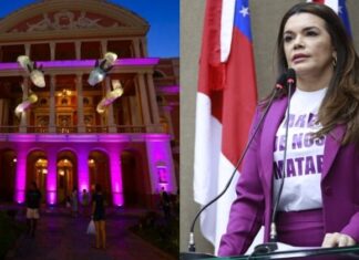 Acendimento das luzes do Teatro Amazonas marca início do Agosto Lilás...