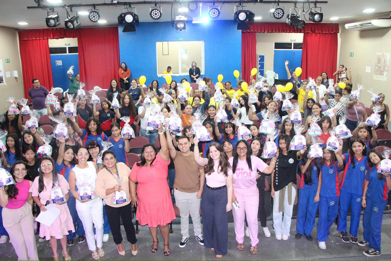 Entrega aconteceu no CECF Magdalena Arce Daou. Ação amplia o acesso de meninas e mulheres em situação de vulnerabilidade social aos itens de higiene