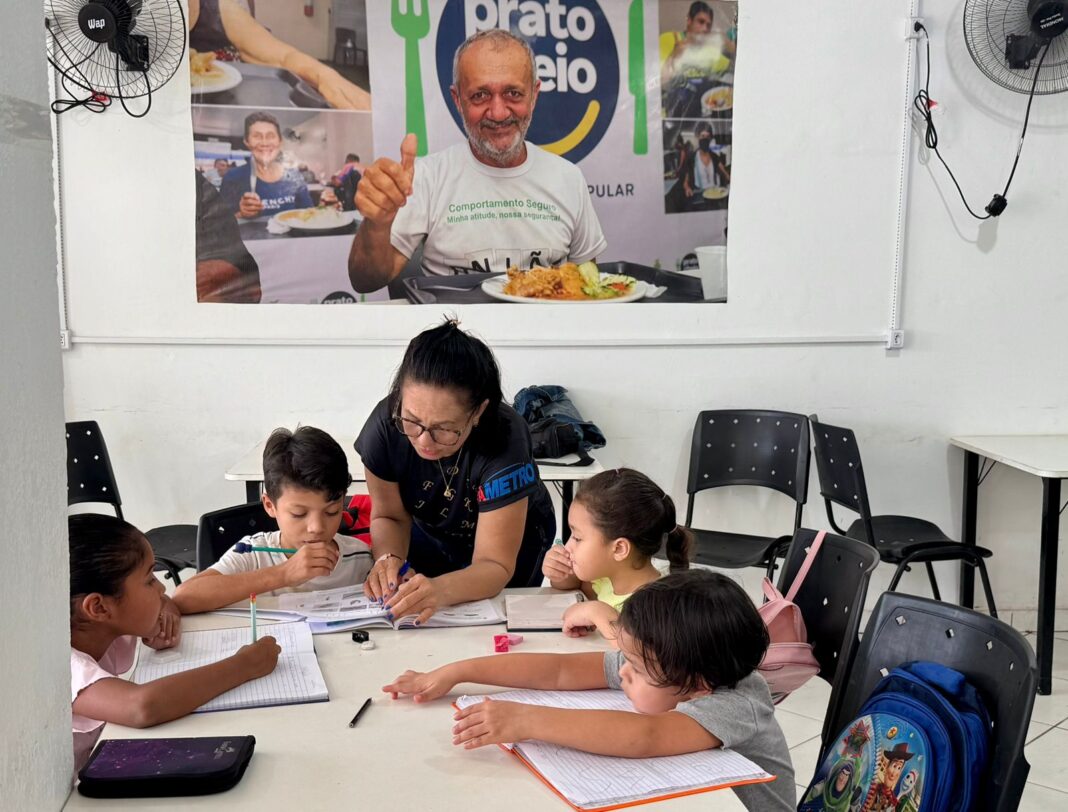 O Prato Cheio do bairro Riacho Doce, na zona norte de Manaus, deu início às aulas de reforço para crianças da comunidade. A Iniciativa é da Secretaria de Estado da Assistência Social e Combate à Fome (Seas) e atende crianças de 5 a 9 anos que frequentam o restaurante popular.