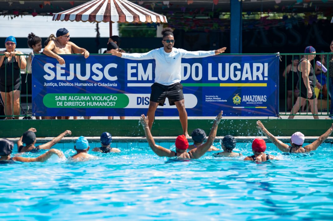Touca, roupa de banho, protetor solar e muita disposição. Assim foi a inauguração da aula de hidroginástica para os grupos da zona sul do projeto Idoso em Movimento da Secretaria de Estado de Justiça, Direitos Humanos e Cidadania (Sejusc). A largada para a atividade aconteceu nesta quinta-feira (28/08), no Centro Associativo dos Suboficiais e Sargentos de Aeronáutica em Manaus (Cassam), localizado no bairro São Lázaro, zona sul da capital.