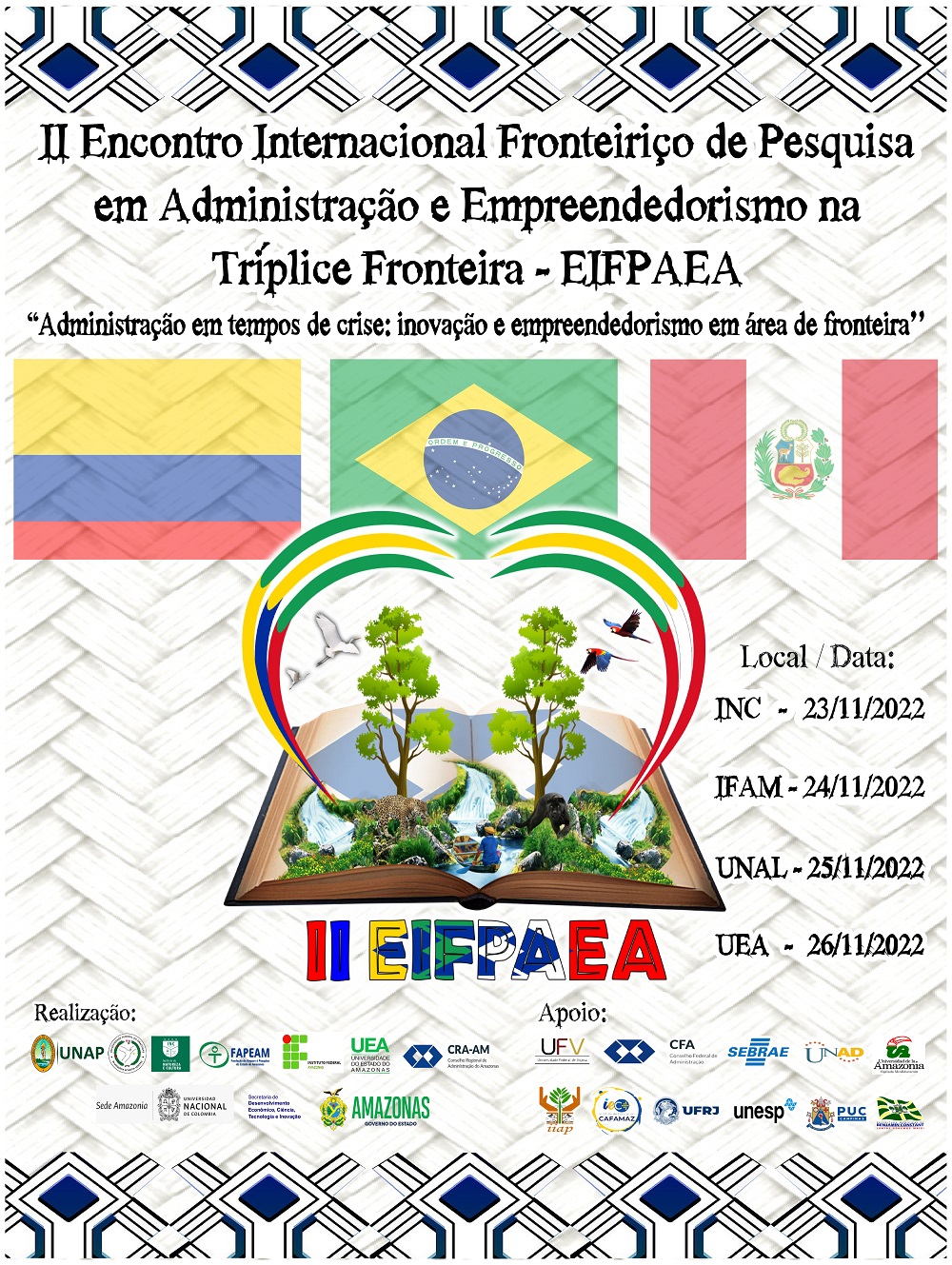 Inicia nesta quarta-feira (23/11) o 2º Encontro Internacional Fronteiriço de Pesquisa em Administração e Empreendedorismo na Tríplice Fronteira (EIFPAEA). O evento conta com o apoio do Governo do Amazonas, por meio da Fundação de Amparo à Pesquisa do Estado do Amazonas (Fapeam), e segue até sábado (26/11), acontecendo em quatro instituições, do Brasil e da Colômbia.