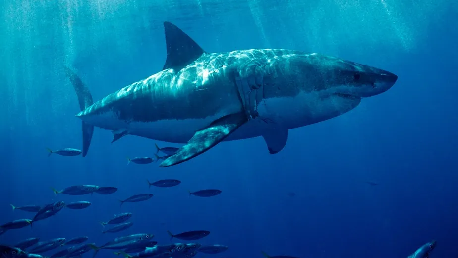 Um tubarão branco enorme navega nas águas das praias da Califórnia Reprodução