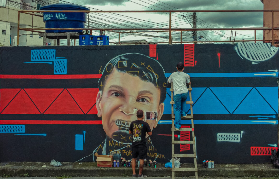 Intitulado “Bate Forte o Tambor”, a obra busca homenagear a memória do artista Zezinho Corrêa, por meio da arte urbana, o grafite, retratando a imagem e a importância do cantor para o cenário cultural amazônico. O trabalho de grafite, que iniciou no dia 23/1 e finalizou na última terça-feira, 1º/2, está localizado na rua Francisca Mendes, 62 B, núcleo 9, bairro Cidade Nova II, zona Norte.