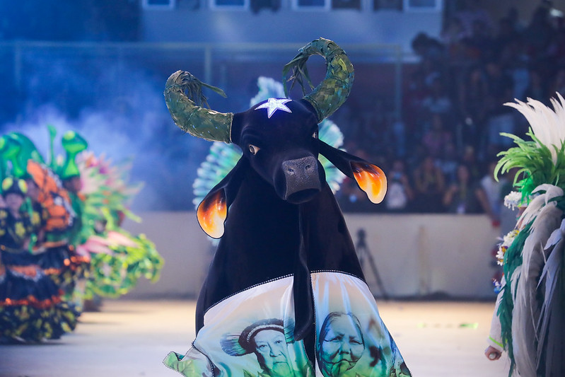 Ao longo da apresentação, o bumbá azulado deu destaque para as emergências climáticas, com a presença de líderes indígenas como Vanda Witoto. O espetáculo foi encerrado com o Ritual Indígena, entoado por Awa Guajá – A Oferenda e Sacaca.