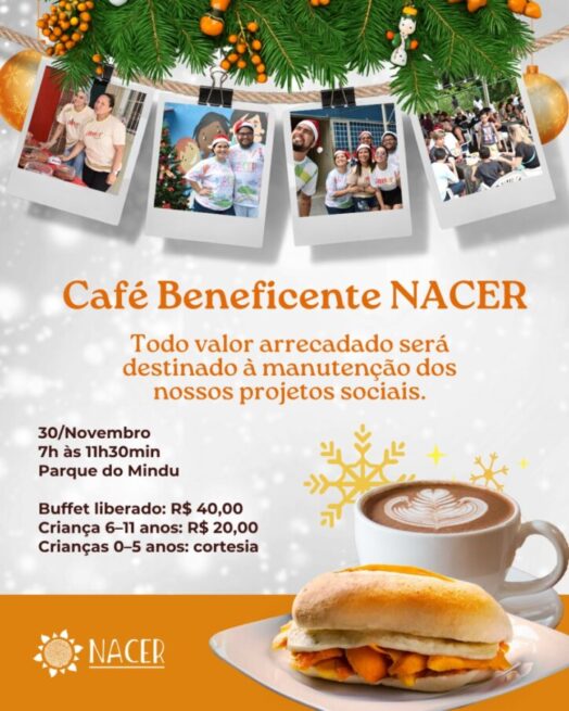 O Núcleo de Assistência à Criança e à Família em Situação de Risco (NACER) promoverá um café da manhã beneficente para arrecadar recursos destinados à manutenção de seus projetos sociais, no dia 30 de novembro (domingo), das 7h às 11h30, no Parque do Mindu, situado na Rua Domingos José Martins, s/n, bairro Parque Dez de Novembro — Zona Sul de Manaus (AM).