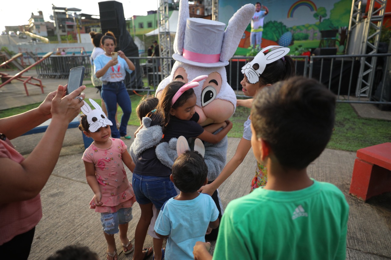 Em clima de alegria, a criançada da zona sul de Manaus compareceu em peso ao Parque Castelhana, no bairro Presidente Vargas, para curtir o último dia da Caravana da Páscoa. Promovido pelo Governo do Amazonas, por meio da Secretaria de Estado de Cultura e Economia Criativa, o evento reuniu programação com atividades lúdicas e apresentações culturais, como a peça “Uma Páscoa na Floresta”, da Cia. Metamorfose.
