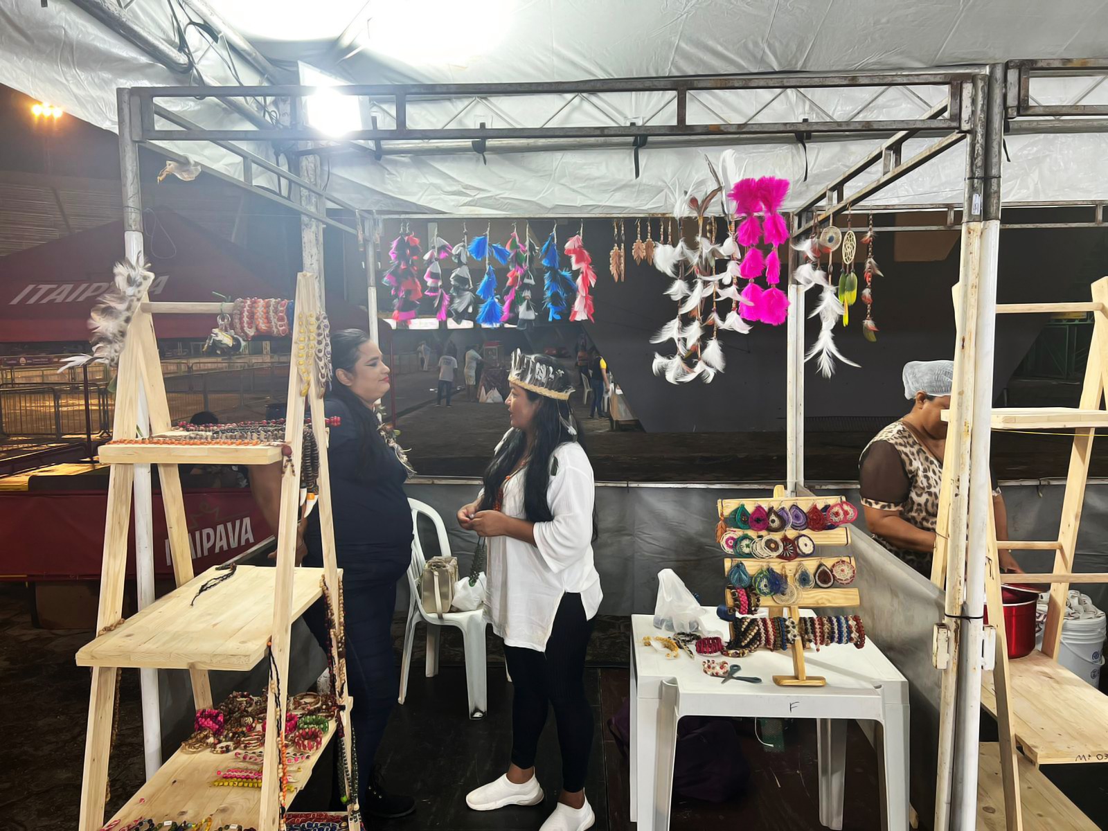 Com o apoio da Fundação Estadual do Índio (FEI), o Centro do Empreendedor Indígena Yandé Muraki e artesãos indígenas do Amazonas expõem e comercializam diversos artefatos e produtos durante o Carnaval na Floresta 2023, realizado pelo Governo do Estado.