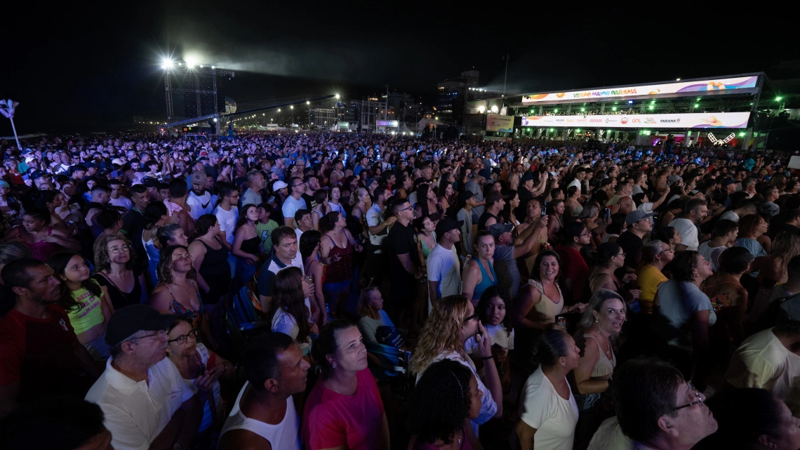 Aline Carneiro, de São José dos Pinhais, aproveitou a folga na praia para acompanhar o show de César Menotti & Fabiano e se impressionou com as dimensões do palco, telões e o efetivo de segurança envolvido. “A estrutura é bem grande, com muito policiamento, o que nos deixa mais tranquilos, e com vários opções de comida e bebida no entorno”, relatou. “É o primeiro show da temporada que nós viemos e ficamos animados”, disse.