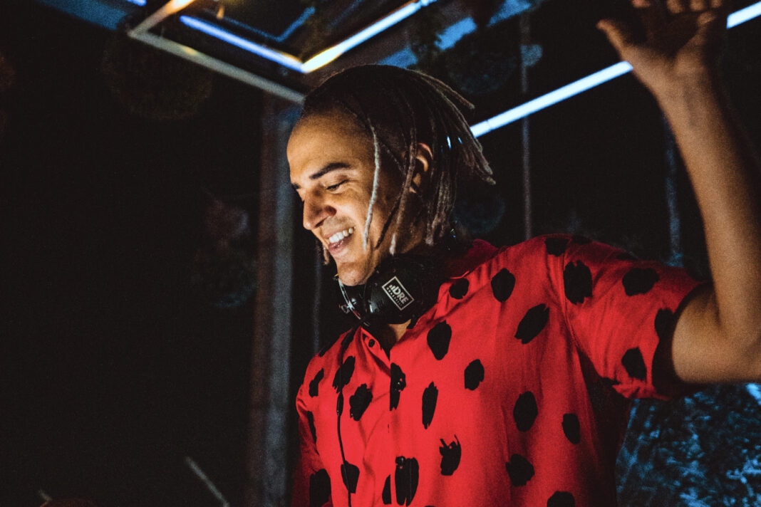 “Eu me sinto parte da viagem que proponho a todos a fazerem. Sou, enquanto toco, um instrumento de algo maior e junto me sinto na pista mesmo estando no palco”, conta Dre.