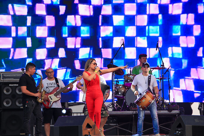 A cantora e compositora Yaneza abriu a apresentação dos artistas locais no espaço cultural urbano. Ela explicou que mistura sound system com DJ e investe em letras românticas e amor próprio, além de críticas políticas e sociais. Para ela, estar entre os artistas neste festival é incrível, e agradeceu a iniciativa da Prefeitura de Manaus.