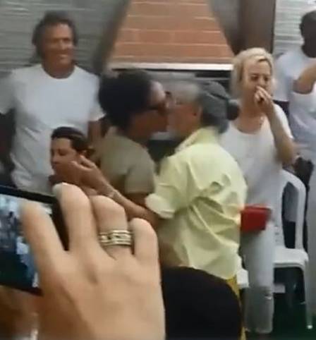 Nas imagens, a cantora aparece dando um beijo na boca na estilista Gilda Midani. Logo, surgiu também quem revelasse o casamento da artista com a mãe do ator e apresentador João Vicente de Castro. “Sortudo é João que tem Bethânia como madrasta”, disse um internauta. “Não sabia que elas eram casadas”, disse outro, surpreso.
