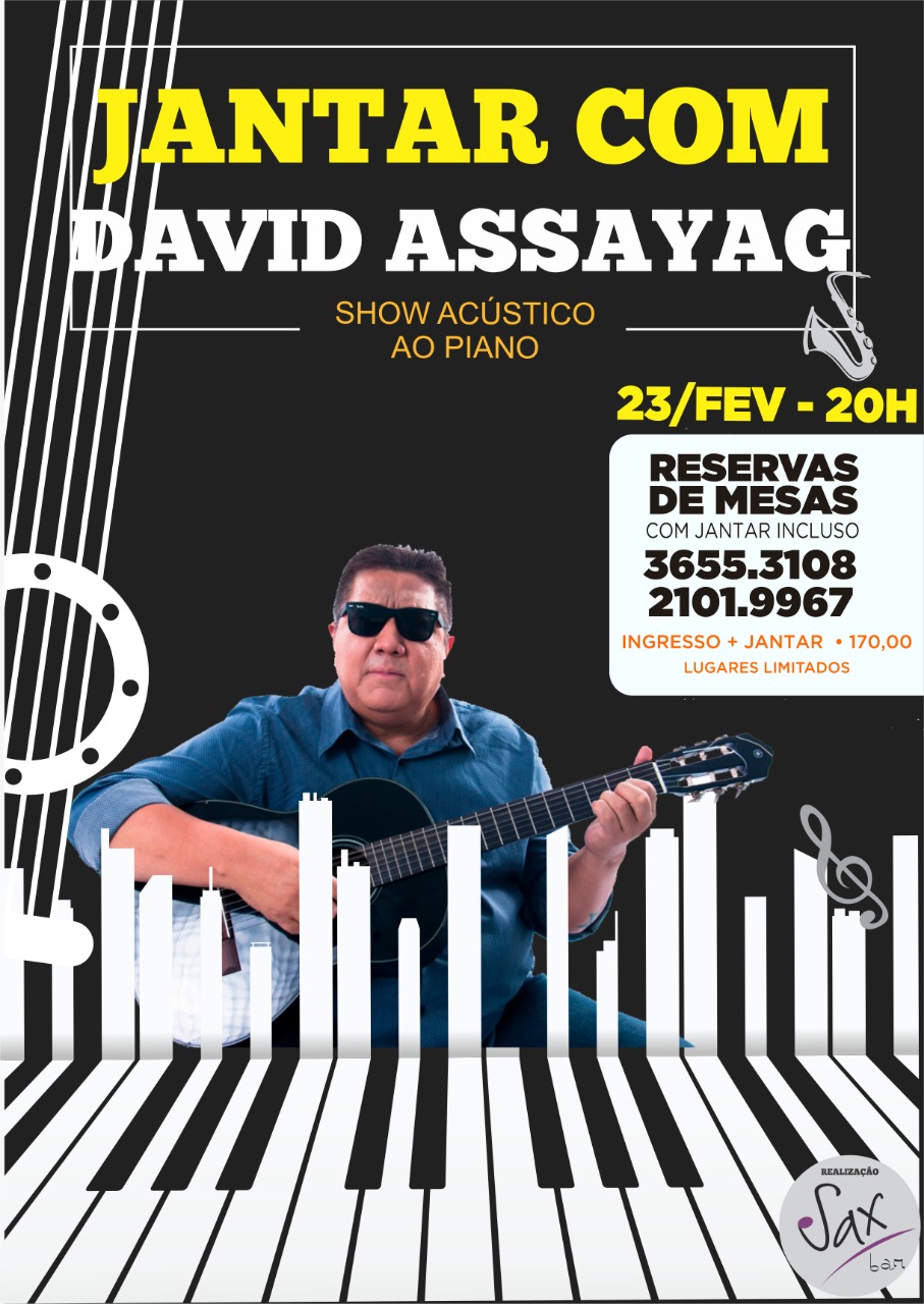 Quando David Assayag entra no Bumbódromo para defender suas toadas, independentemente de Caprichoso ou Garantido, a floresta se cala. Com uma voz poderosa, conhecido como “Imperador da Amazônia” pelos fãs, o cantor David Assayag, fará uma apresentação totalmente reservada no dia 23 de Fevereiro (Sábado), no Sax Bar.