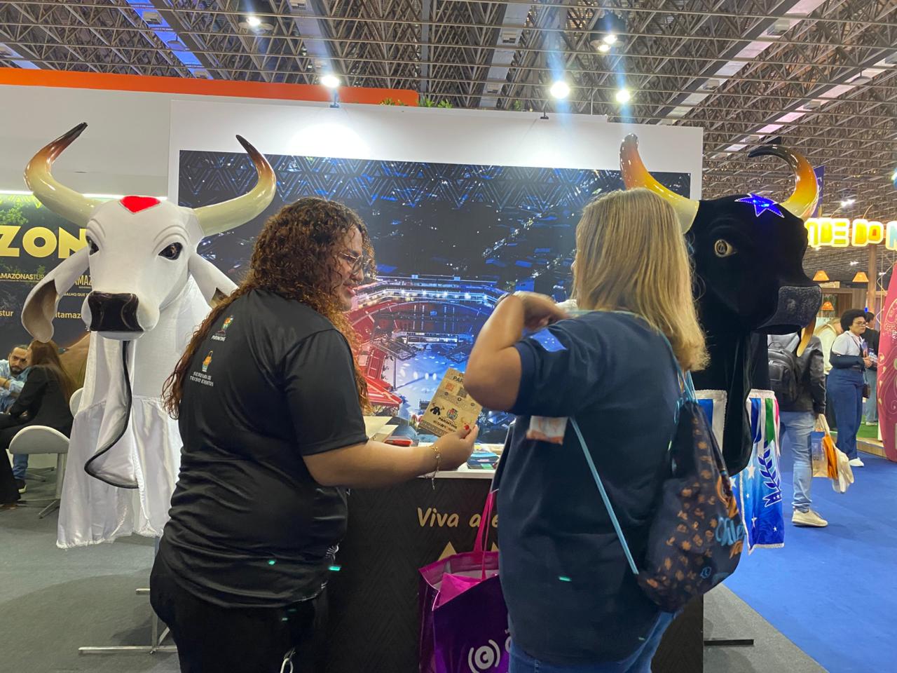 Os bois bumbás Caprichoso e Garantido foram o centro das atenções no primeiro dia da Feira Internacional dos Agentes Brasileiros de Viagens (ABAV Expo 2025), que iniciou nesta quarta-feira (8) e se estende até o dia 10 de outubro. A Prefeitura de Parintins, por meio da Secretaria de Turismo e Eventos, e a Empresa Estadual de Turismo do Amazonas (AmazonasTur), representam o Amazonas no evento que acontece no anfiteatro Riocentro, no Rio de Janeiro.
