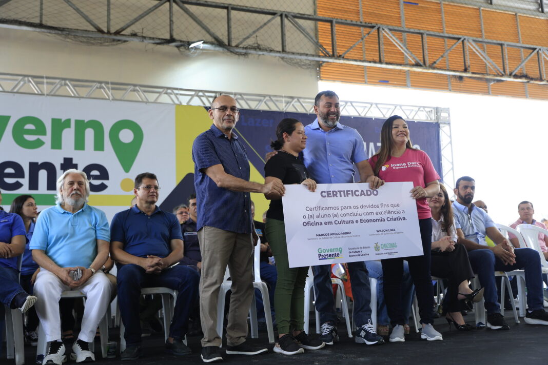 No sábado, o programa deu continuidade às atividades, reunindo moradores para uma manhã repleta de serviços e atrações culturais. O cantor Sandiego e sua banda abriram o evento com um show animado, apresentando hits populares como “Não Temos Tempo a Perder” e “Vou Pedir Pra Você Ficar”. A presença do governador Wilson Lima e de outras autoridades garantiu a entrega de certificados aos participantes das oficinas realizadas no evento.