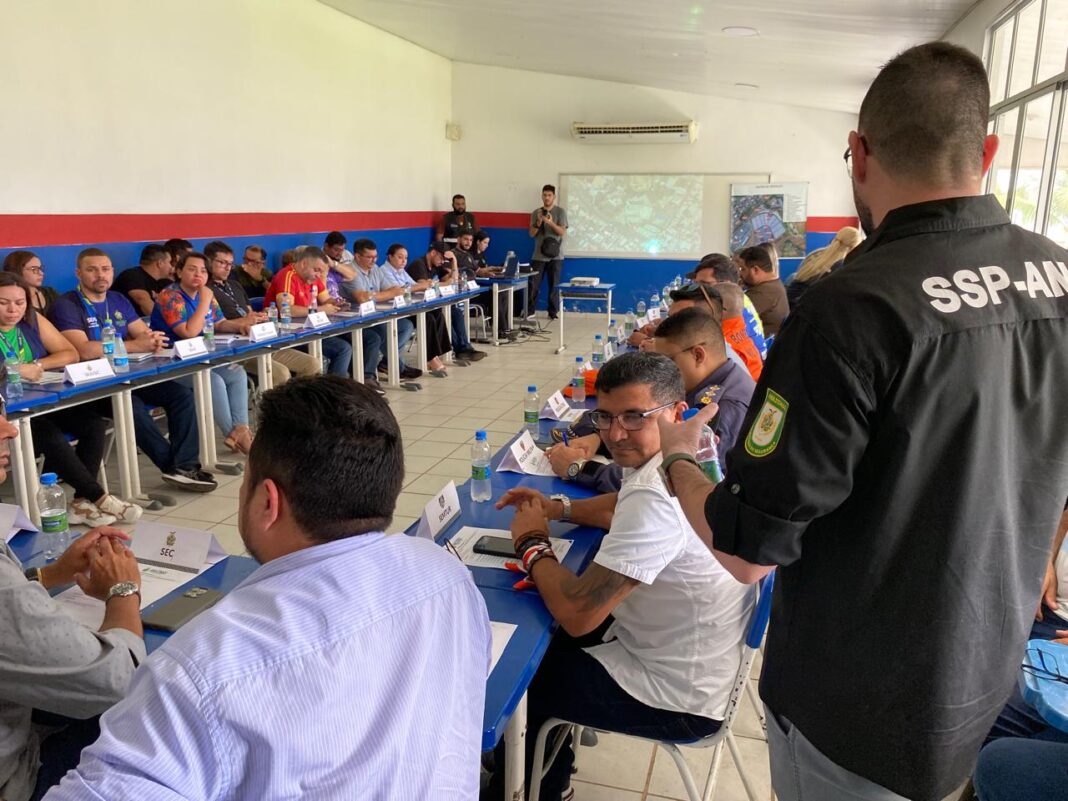 A reunião integrada foi coordenada pela SSP-AM, representada pelo coordenador do departamento de Logística da instituição, coronel Wellington Silva e pelo secretário de Estado e Economia Criativa, Marcos Apolo Muniz.