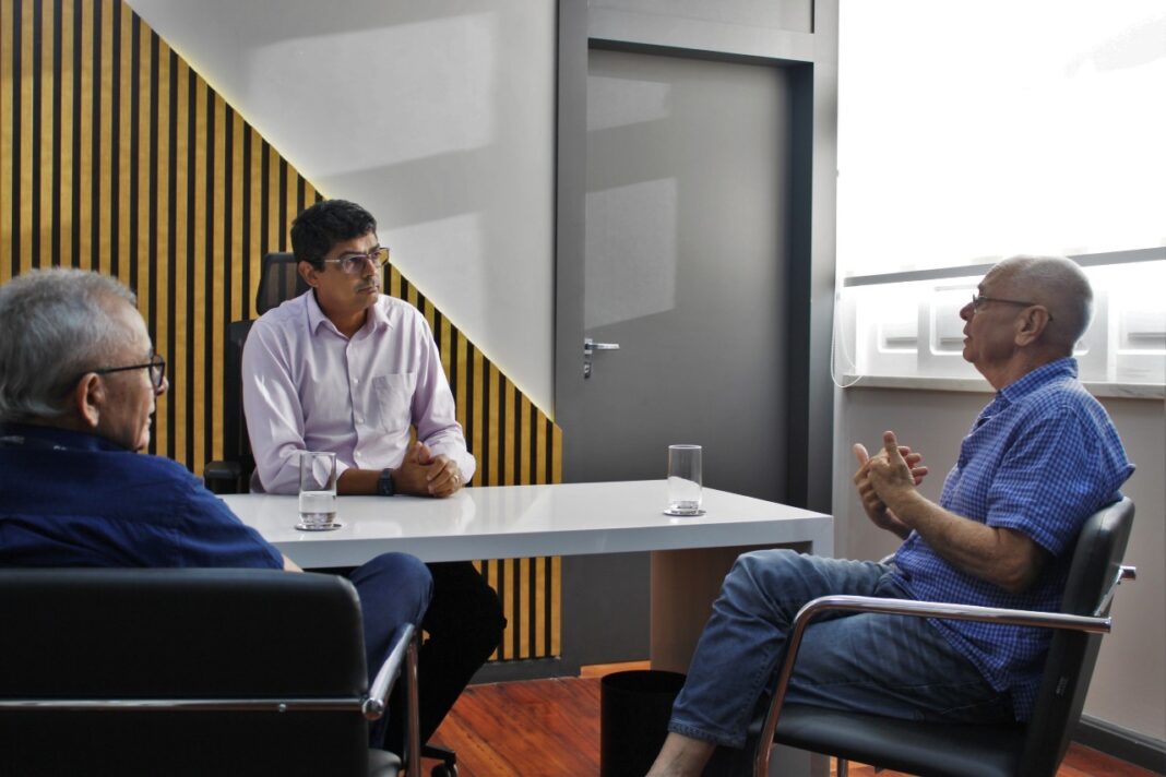 Os secretários titulares de Desenvolvimento Econômico, Ciência, Tecnologia e Inovação (Sedecti) e da Cultura e Economia Criativa (SEC), Angelus Figueira e Marcos Apolo, reuniram-se nesta terça-feira (24/05) para discutir sobre novos vetores de desenvolvimento econômico e a geração de postos de trabalho e renda no estado. O secretário executivo de desenvolvimento, Valdenor Cardoso, também participou do encontro.
