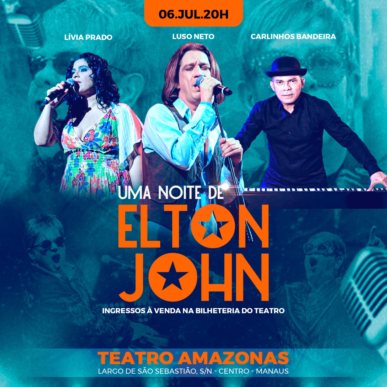 Contando um pouco da história de cada canção, o pianista vai dispondo das interpretações dos cantores Luso Neto e Lívia Prado que juntos relembram hits como Blue Eyes, Candle In The Wind e I Sttil Standing.
