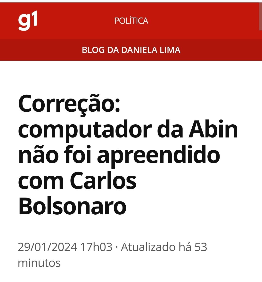 Após Fake news a jornalista da extrema-esquerda Daniela Lima (ex-CNN e atual Globo News) publicou uma nota dizendo que errou ao informar na manhã desta segunda-feira (29) que um computador da Agência Brasileira de Inteligência (Abin) teria sido encontrado entre os pertences do vereador Carlos Bolsonaro (Republicanos-RJ).