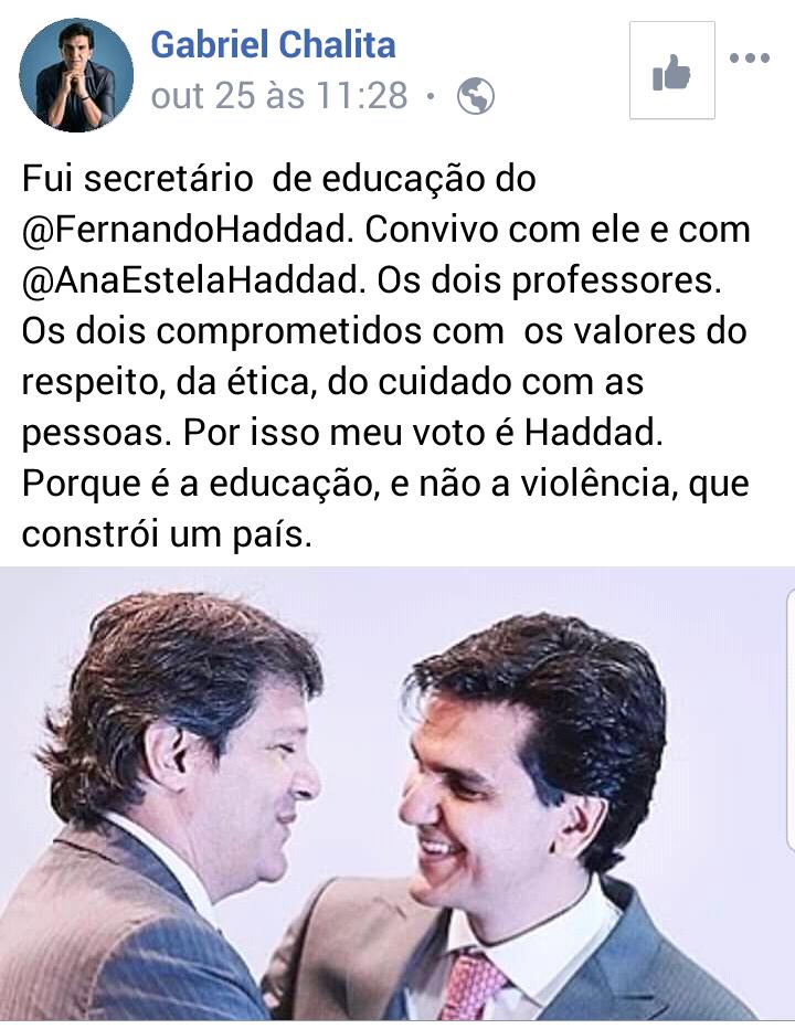 Critico do kit gay do então prefeito Fernando Haddad, Gabriel Chalita, defendeu apenas a importância da diversidade