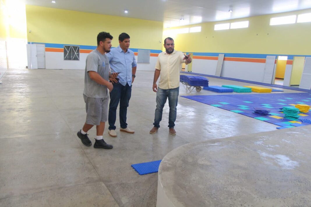 Nesta terça-feira, dia 04, o prefeito de Parintins, Bi Garcia, e o secretário de Obras, Albano Albuquerque, realizaram nova visita técnica para verificar o andamento dos trabalhos, em especial, a instalação do piso modular, que utiliza tecnologia de amortecimento. “Nós estamos aqui hoje aplicando o piso modular. Esse piso com amortecedor, que é usado em creches de países como os Estados Unidos. Uma estrutura moderna usada para atender bem as nossas crianças”, informa Bi Garcia.