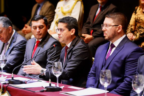 Ainda no início da solenidade, ao recepcionar Wilson Lima na entrada do Teatro Amazonas, o deputado David Almeida saudou o então governador eleito. “Que Deus o abençoe, que Deus te guarde, te ilumine, que abra tua mente, teu pensamento, que Vossa Excelência tome as decisões corretas que beneficiarão o povo do Estado do Amazonas”, disse o presidente da Aleam.