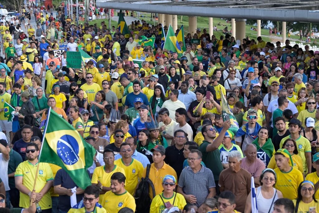 MANAUS (AM) – Sob o slogan “Acorda, Brasil”, milhares de manifestantes ocuparam a Ponta Negra, na zona Oeste de Manaus, neste domingo (1º de março). O ato, que reuniu as principais lideranças da direita amazonense, serviu como plataforma para o lançamento de pautas conservadoras e críticas contundentes às gestões municipal, estadual e federal.