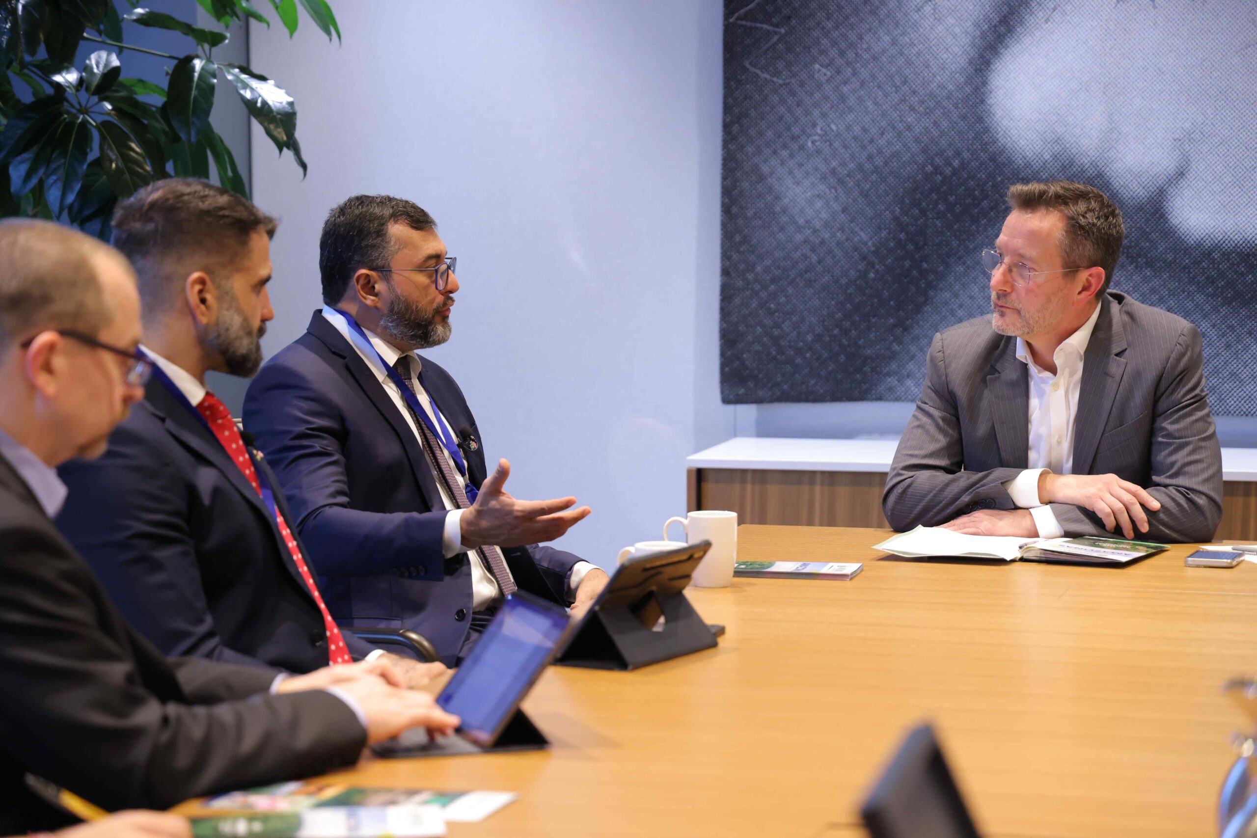 Wilson Lima também reuniu com Lord Benyon, ministro de Estado do Gabinete de Relações Exteriores, da Commonwealth e de Desenvolvimento do governo britânico, tratando sobre a política de rastreabilidade de produtos que são livres de desmatamento, uma preocupação atual do Reino Unido. Na agenda articulada pela embaixadora do Reino Unido no Brasil, Stephanie Al-Qaq, e com a presença da Embaixada do Brasil, o governador levou os projetos do Amazonas e ressaltou que qualquer medida de redução da exportação de produtos amazônicos pode provocar o efeito inverso no desmatamento.