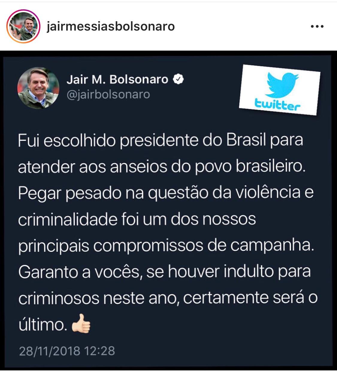DestaquesIndulto de Natal é meus zovos,valeu Presidente Mito #Bolsonaro2018 28 de novembro de 2018CompartilharFacebookXPinterestWhatsAppEmailTelegram Mensagem do Presidente traz esperança ao povo brasileiro e da intimado aos direitos humanos para bandido no Brasil.