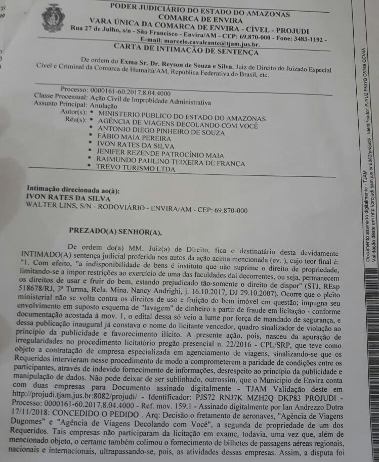 Ivon Rates (PROS) que se intitulou líder dos prefeitos no governo de transição de Wilson Lima, tem festa cancelada pela Justiça em Envira e já responde no MP pelo asfaltamento não executado na cidade