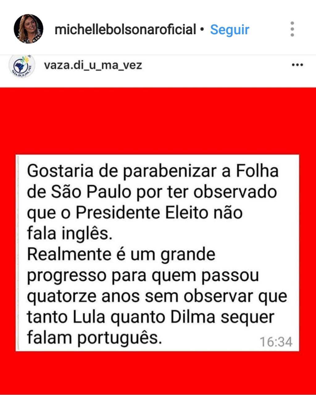 Um meme sensacional supostamente compartilhado pela 1° dama Michelle Bolsonaro, contra a FOLHA DE SÃO PAULO, viraliza nas redes sociais.