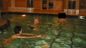 O ex-presidente Bill Clinton aparece em uma foto em uma piscina nos arquivos de Epstein recentemente divulgados. As imagens foram liberadas pelo Departamento de Justiça na sexta-feira. (Departamento de Justiça)