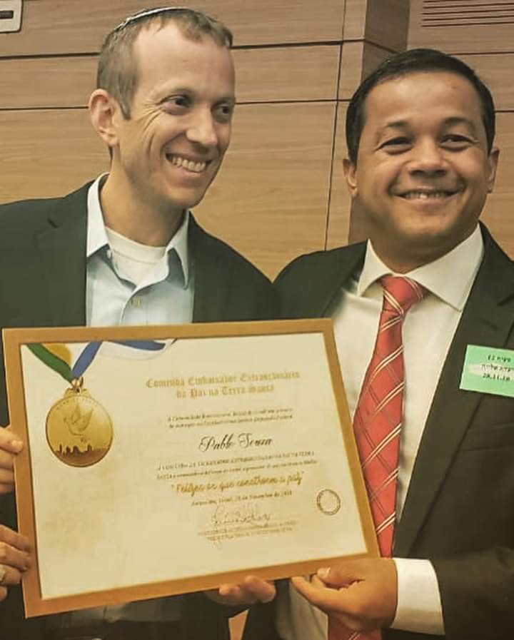 ” Durante a visita tive a honra de ser um dos homenageados com a Comenda que celebra esta data e com o título de Embaixador Extraordinário da Paz na Terra Santa”, disse Pablo.