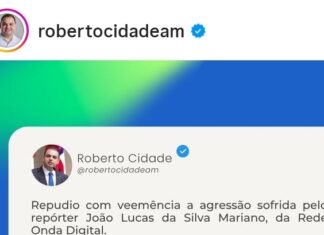 Governador interino, Roberto Cidade, divulga nota de repúdio contra agressão sofrida pelo repórter João...