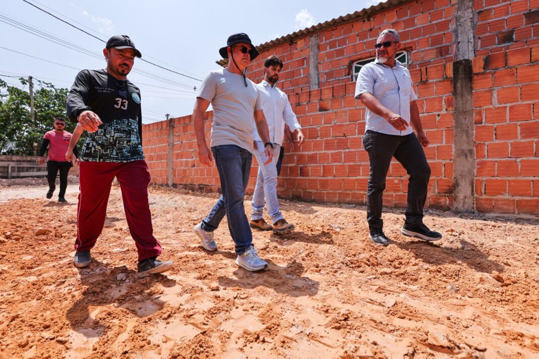 Serviços do 'Asfalta Manaus' em sete comunidades da capital são fiscalizados pelo prefeito David Almeida