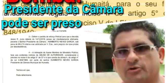 O portal acrítica de humaita recebeu uma informação bombástica que corre no meio jurídico em Manaus, coloca em perigo a liberdade do atual presidente da Câmara de Humaitá Humberto Neves Garcia (PAIZINHO).