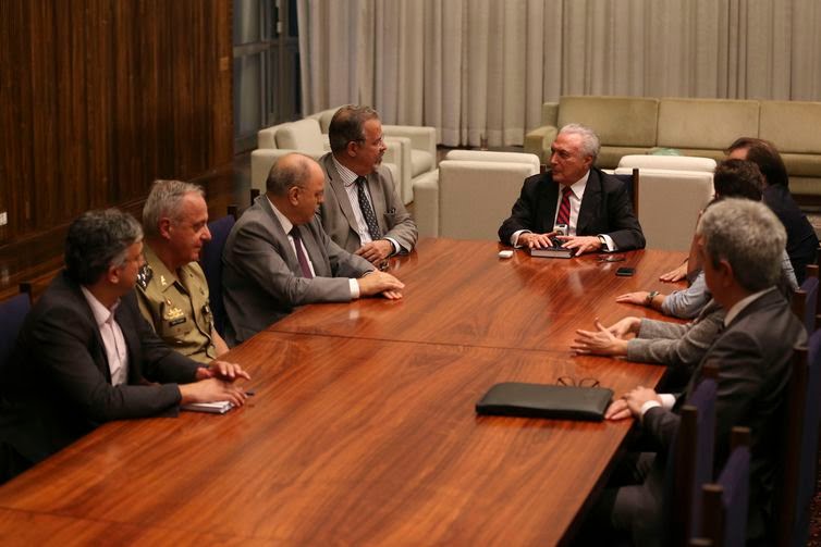 Temer recebeu os ministros do Gabinete de Segurança Institucional, Sergio Etchegoyen; do Planejamento, Esteves Colnago; da Advocacia-Geral da União, Grace Mendonça; e dos Direitos Humanos, Gustavo Rocha; para tratar do assunto. O presidente da Câmara dos Deputados, Rodrigo Maia, também estava no encontro.
