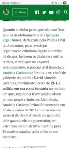 A presença constante de Anabela Cardoso de Freitas nas gestões de David Almeida — passando pela Assembleia Legislativa, pelo Governo do Estado e pela Prefeitura — é destacada pela imprensa local como uma relação de extrema proximidade. A prisão de uma investigadora de polícia, lotada simultaneamente em gabinetes políticos e comissões de licitação, levanta questionamentos públicos sobre a fiscalização das nomeações nos altos escalões. Este conteúdo foi consolidado com base nos registros do Portal da Transparência da Casa Civil e em denúncias jornalísticas documentadas.