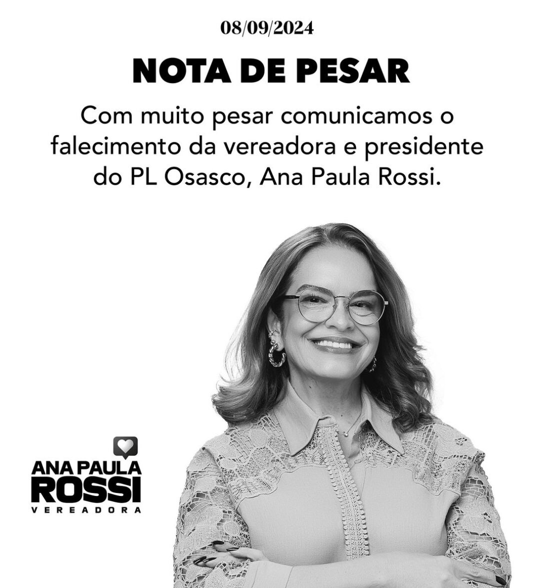 A vereadora de Osasco Ana Paula Rossi (PL), 55 anos, morreu, na noite desse domingo (8/9), por complicações decorrentes de um câncer.