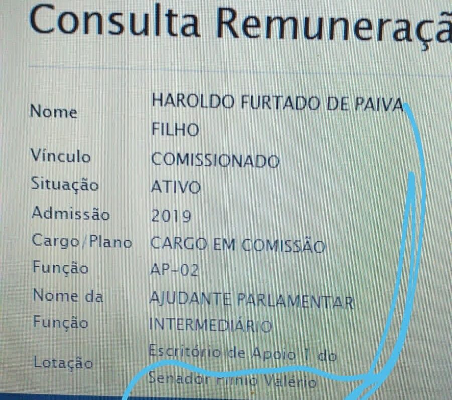 Errata: A pessoa citada no print tem parentesco com o Dono do Portal que tem parceria com o senador.