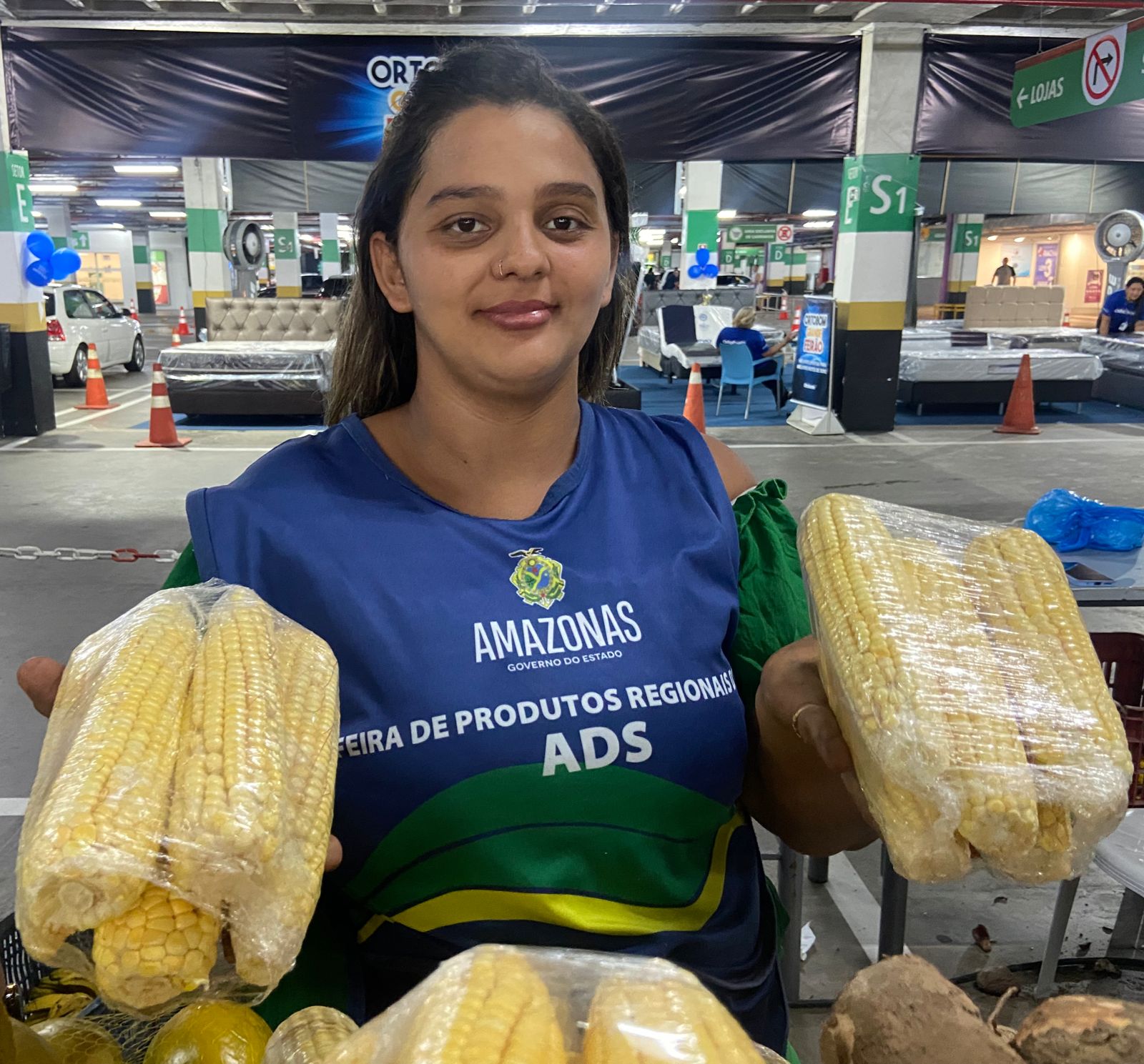 A participante das edições de feiras do Sumaúma Park Shopping, Shopping Ponta Negra e Centro Cultural Povos da Amazônia, Franciane Rocha, 25 anos, é produtora rural juntamente com a família em Manacapuru (distante 68 quilômetros de Manaus), há mais de 10 anos, e o milho é um dos produtos que ela mais comercializa neste período junino.