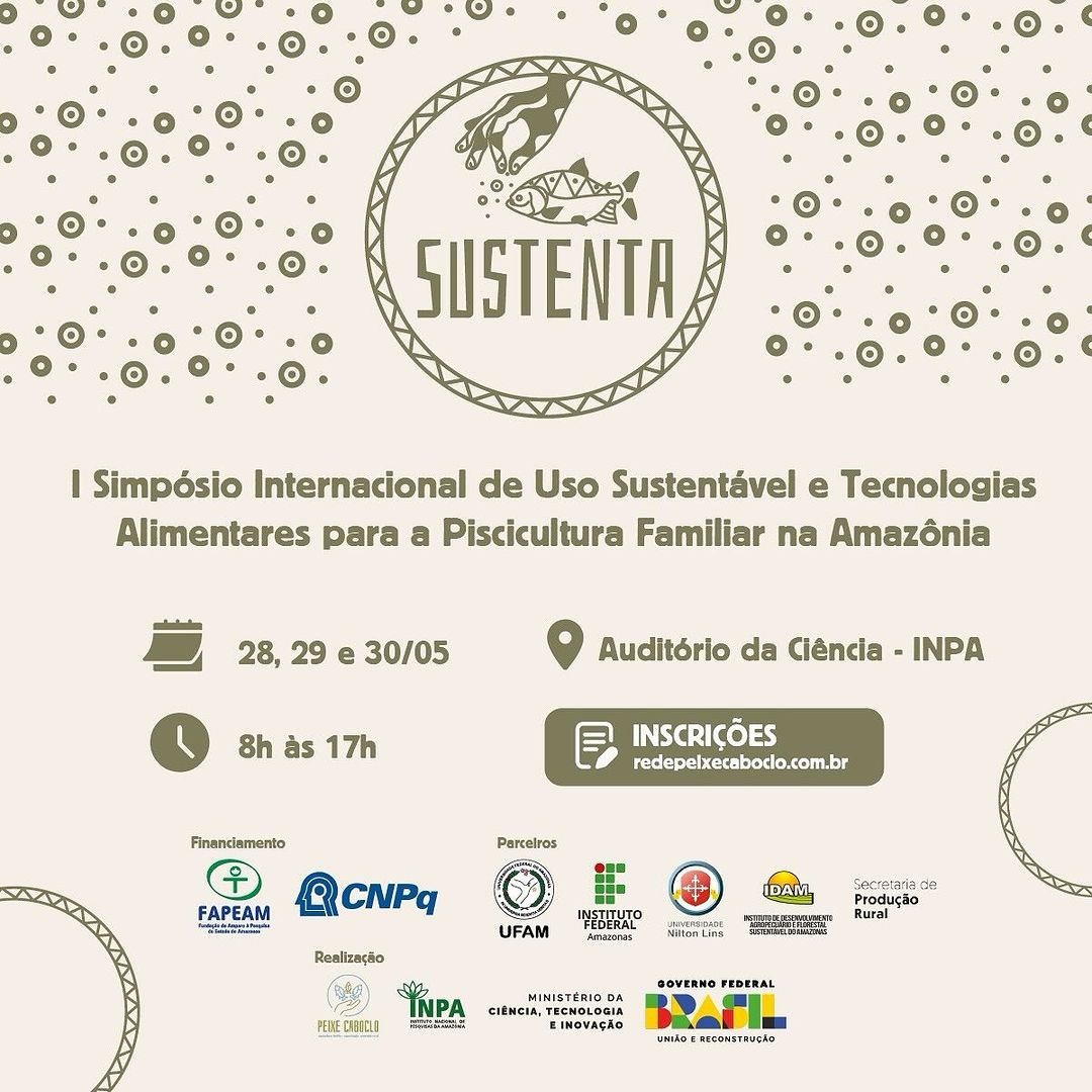 A troca de experiências para encontrar soluções inovadoras e reunir esforços para o desenvolvimento e o fortalecimento da piscicultura familiar são os objetivos principais do “1º Simpósio Internacional de Uso Sustentável e Tecnologias Alimentares para a Piscicultura familiar na Amazônia (Sustenta)”. O evento científico é apoiado pelo Governo do Amazonas, por meio da Fundação de Amparo à Pesquisa do Estado do Amazonas (Fapeam), via Programa de Apoio à Realização de Eventos Científicos e Tecnológicos no Estado do Amazonas (Parev).