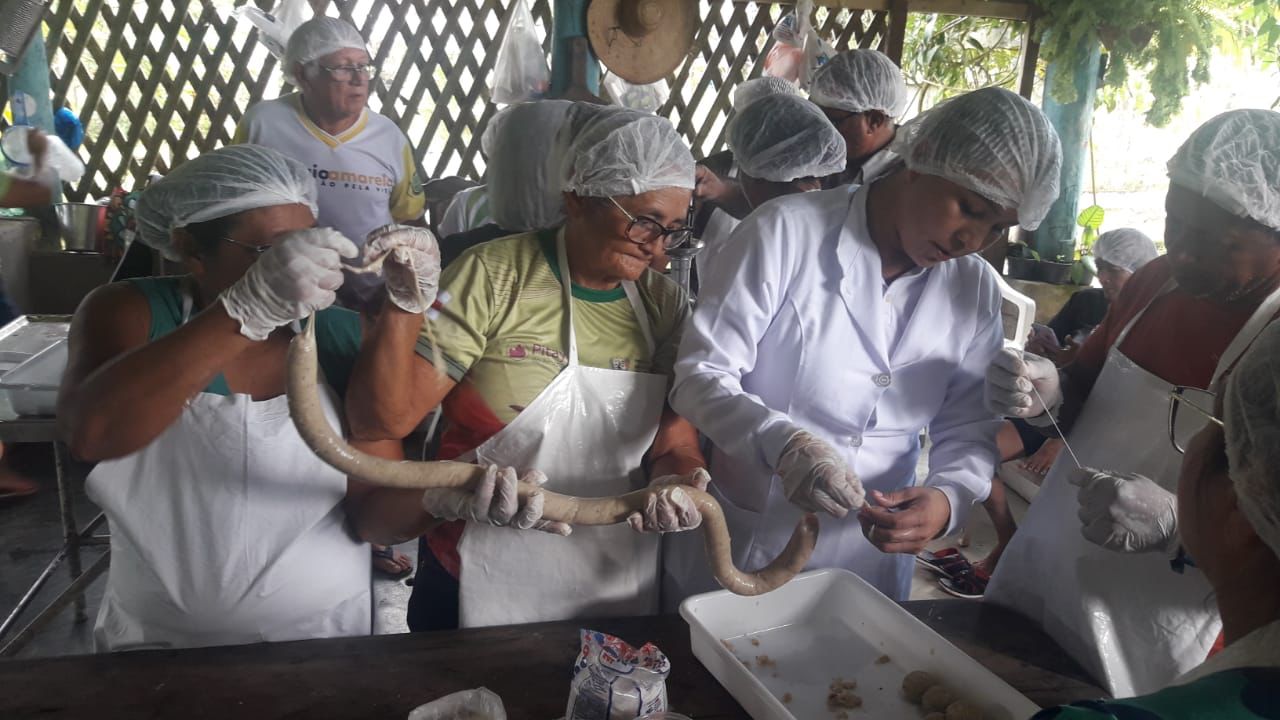 O Governo do Amazonas, por meio da Secretaria de Estado de Produção Rural (Sepror), em parceria a com o Serviço de Apoio às Micro e Pequenas Empresas (Sebrae/AM), ofereceu, na terça-feira (30/05) e quarta-feira (31/05), curso de retirada de espinha de peixe e beneficiamento, subprodutos e gastronomia de pescado, no município de Rio Preto da Eva (a 57 quilômetros de Manaus).