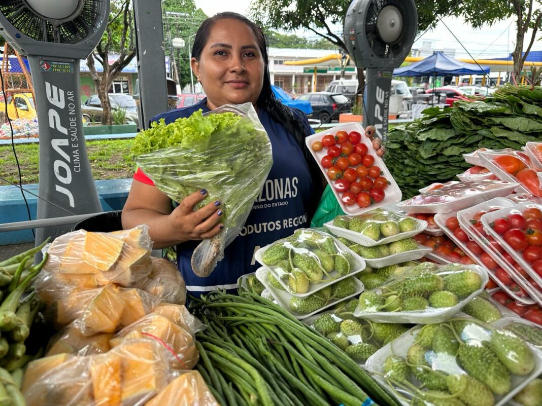 Uma das beneficiadas é a produtora Débora Araújo, que comercializa seus produtos nas Feiras de Produtos Regionais do governo executadas pela ADS. Há mais de nove anos, toda semana, ela marca presença em dois pontos estratégicos: na praça de alimentação do bairro Dom Pedro e no Centro Cultural Povos da Amazônia. Lá, Débora comercializa suas hortaliças, contribuindo para a economia local e para a segurança alimentar da região.
