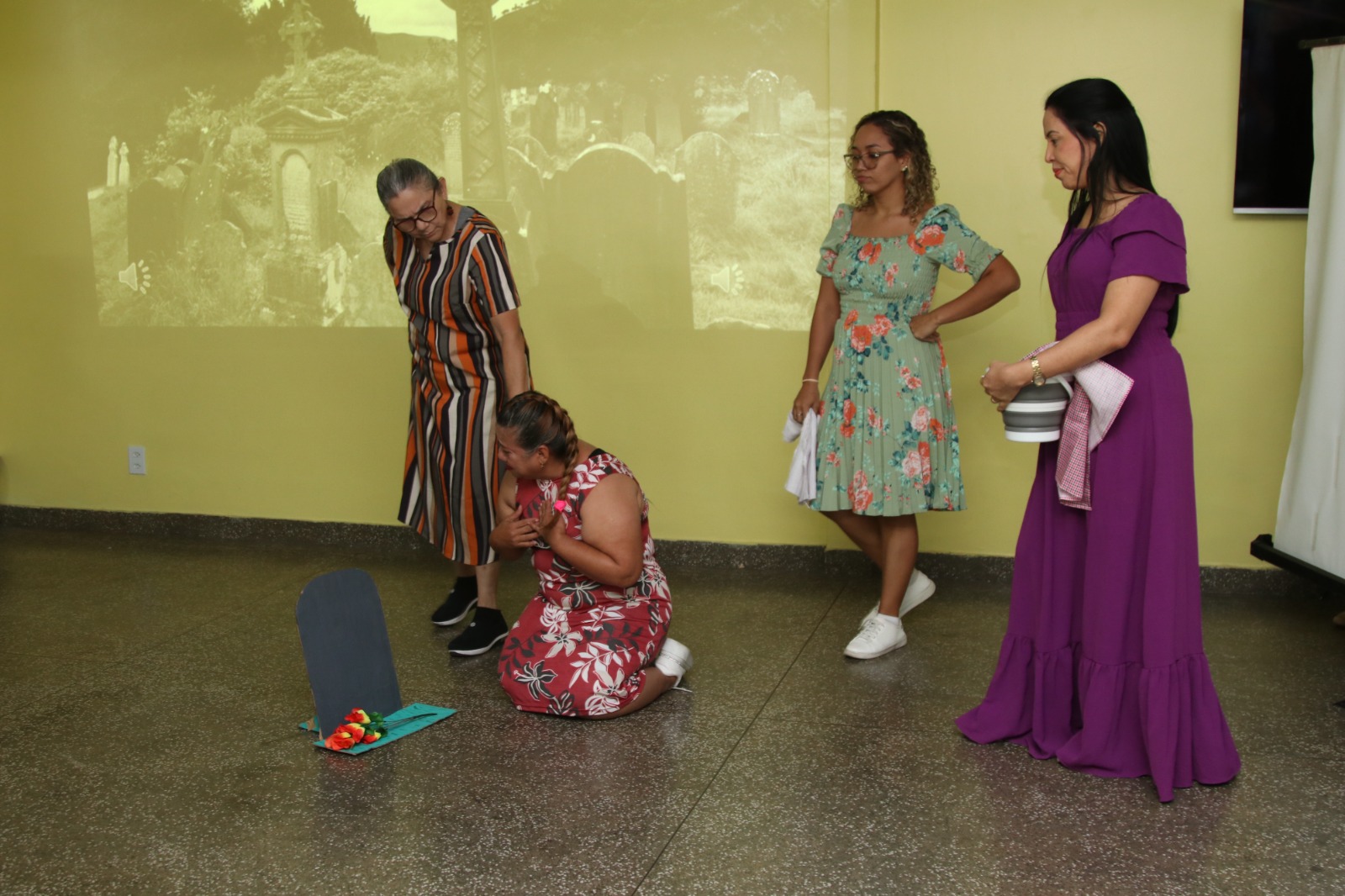A programação da noite contou com a peça teatral “Literatura Surda conta a Cinderela Surda”, apresentada por alunos surdos e profissionais da Semed também surdos e não surdos.