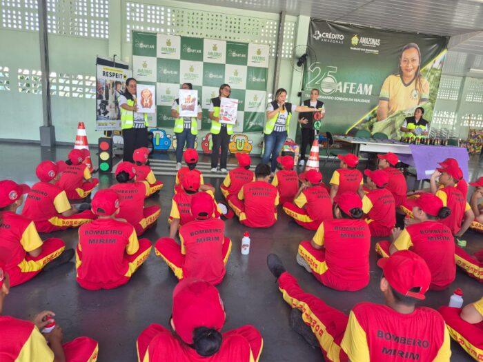 A Prefeitura de Manaus, por meio do Instituto Municipal de Mobilidade Urbana (IMMU), realizou, nesta quarta-feira, 29/4, uma ação educativa voltada para 57 alunos do Programa Educacional Bombeiro Mirim (Proebom), fortalecendo a conscientização no trânsito e ampliando o atendimento à comunidade. A ação aconteceu no Corpo de Bombeiros Militar, na avenida Constantino Nery, zona Centro-Sul da cidade.