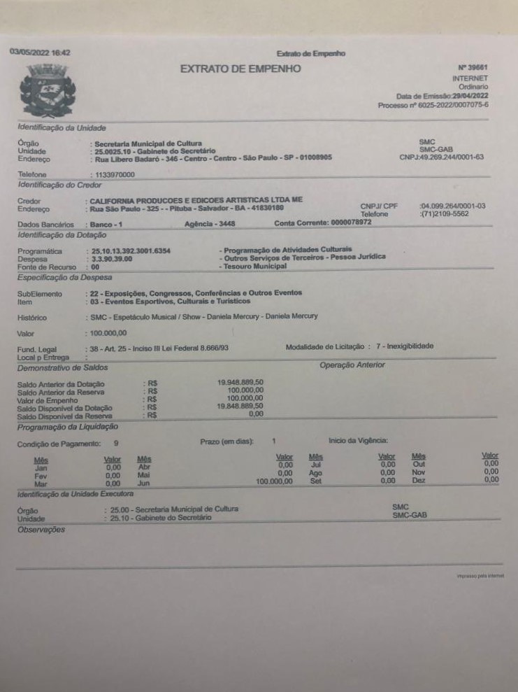 Prefeitura de São Paulo bancou o show de Daniela Mercury para Lula, no valor de R$100 mil? pic.twitter.com/JB73c76tzw— Claremi Bueloni 🇧🇷🇧🇷🇧🇷🇧🇷🇧🇷 (@claremibueloni) May 3, 2022