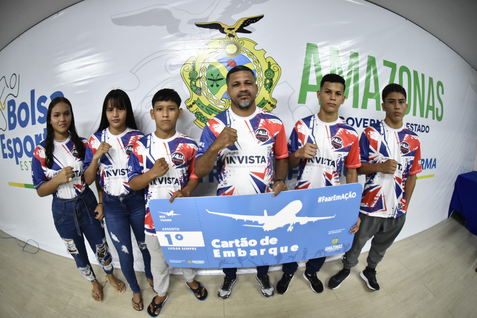 Os atletas de luta olímpica amazonense Agata Franco, Fabian Lima, Francisco da Silva, Gabriele de Souza e Mailk Ibson e o treinador Anderson Alves embarcam nesta sexta-feira (04/08), rumo à cidade de Maceió (AL), onde participaram do Campeonato Brasileiro U15 em busca da classificação para o Pan-Americano U15, no Panamá. Com o apoio do Governo do Amazonas, a equipe recebeu passagens áreas por meio da Secretaria de Estado do Desporto e Lazer (Sedel).