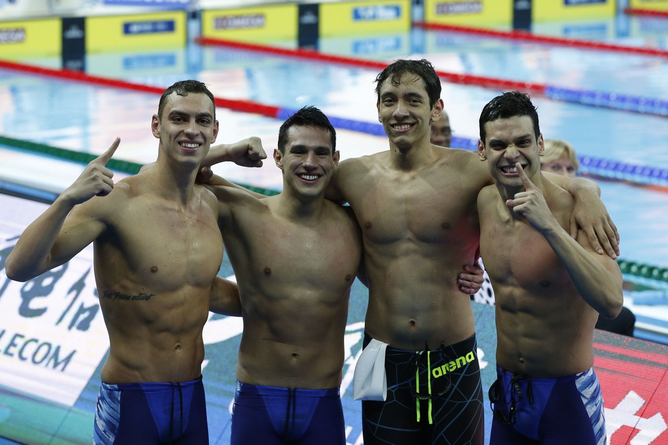Foi um feito espetacular! Azarão na final do revezamento 4x200m livre, o jovem time brasileiro surpreendeu os favoritos Rússia, China e Estados Unidos e conquistou a medalha de ouro no Mundial de piscina curta (25m) de Hangzhou, na China, com direito a recorde mundial. O quarteto formado por Luiz Altamir, Fernando Scheffer, Leonardo Santos e Breno Correia liderou de ponta a ponta e bateu na frente com o tempo de 6m46s81 – mais de dois segundos abaixo do antigo recorde (6m49s04).