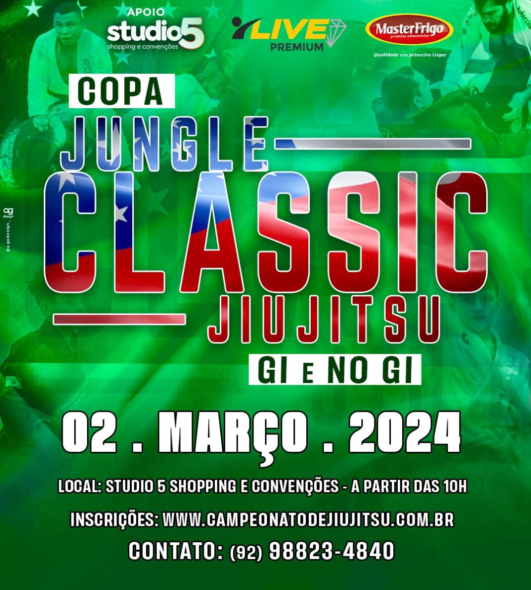 Um novo campeonato de lutas vai mostrar sua cara em Manaus. É a Copa Jungle Classic de Jiu-Jitsu Gi e Nogi, que acontece no dia 2 de março, no Studio 5 Shopping e Convenções, na Avenida Rodrigo Otávio, Distrito Industrial, Zona Sul de Manaus.